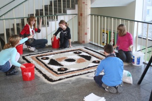 finden sehr viel Spaß an dieser Aktivität, deren Ergebnis, je nach Wetter bis zu ca. 2 Wochen aussen liegt und sehr auffällig ist. Sehr viele Passanten werden darauf aufmerksam und die kleinen oder großen Künstler sind sehr stolz.
